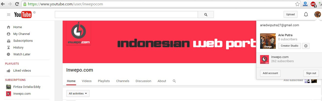 Catatan: YouTube channel kamu harus membuat Google Plus menggunakan email yang sama.
