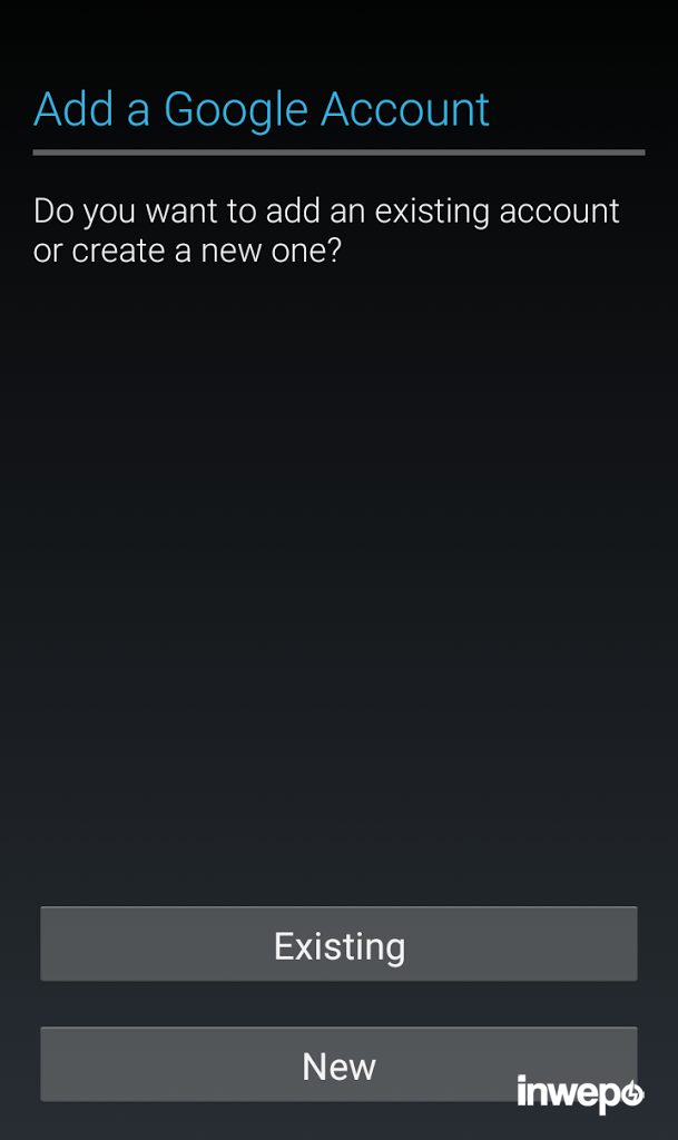 4. Jika kamu sudah punya akun gmail-nya pilih “Existing”. Tetapi jika ingin membuat membuat baru pilih “New”.