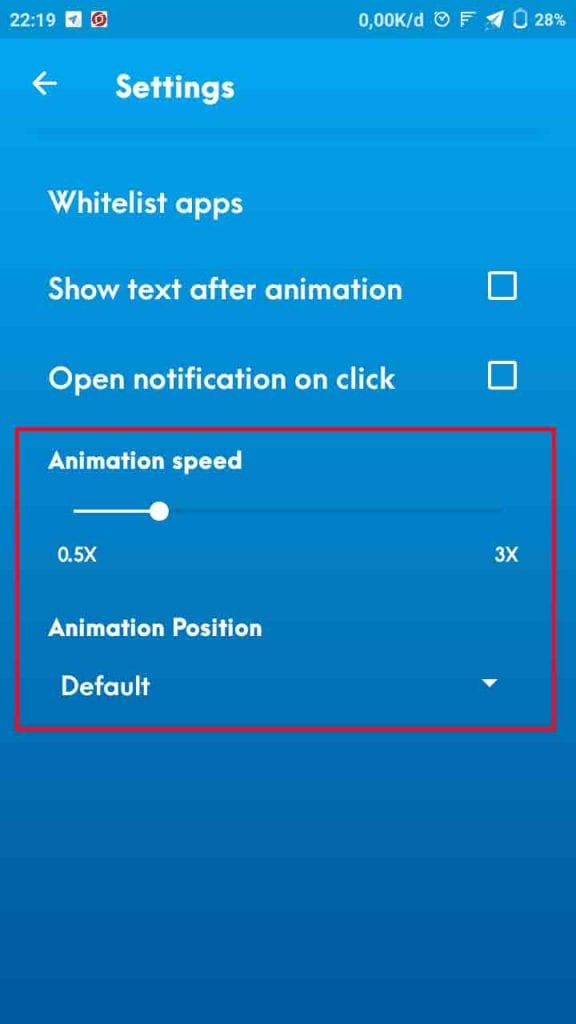 9. Kamu bisa mengatur kecepatan animasi dengan memilih Animation speed dan untuk mengatur tata letak notifikasi kamu bisa memilih Animation Position.