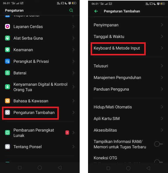 2. Cari dan pilih ‘Pengaturan Tambahan’. Klik ikon panah samping ‘Keyboard & Metode Input’.