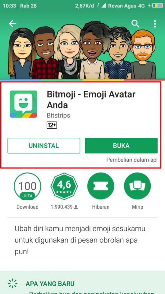 Langkah pertama, pastikan untuk menginstall aplikasi Bitmoji terlebih dahulu, silakan download di Play Store.