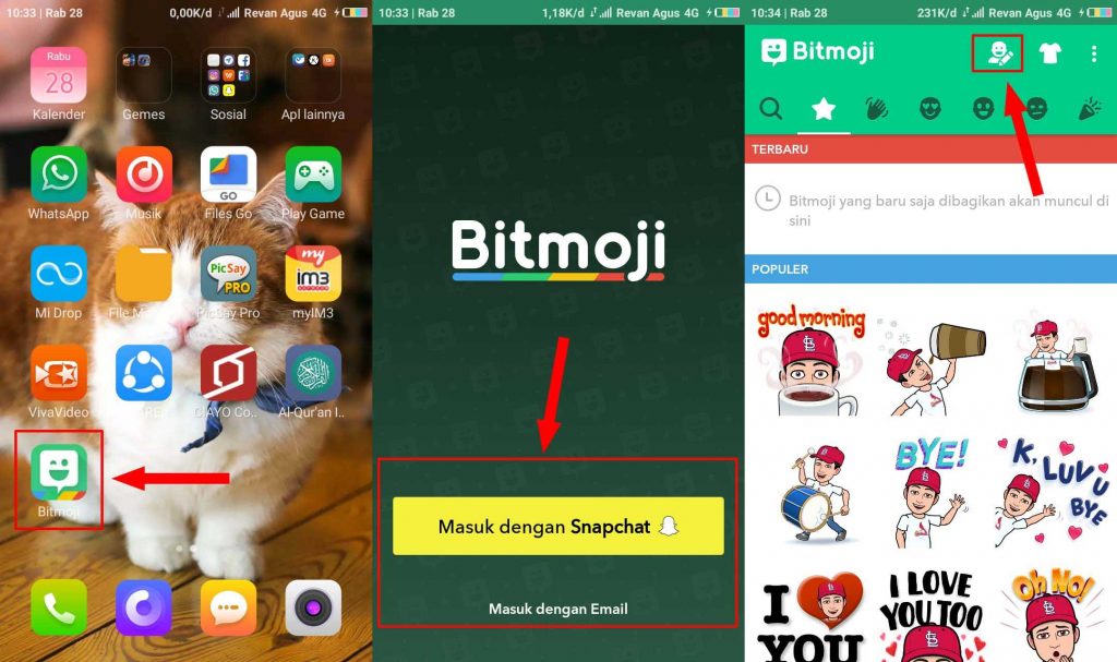 Langkah kedua, setelah terinstall buka aplikasi Bitmoji, kemudian masuk menggunakan akun Snapchat atau bisa juga menggunakan akun email. Selanjutnya jika sudah masuk tap pada icon orang di bagian atas.