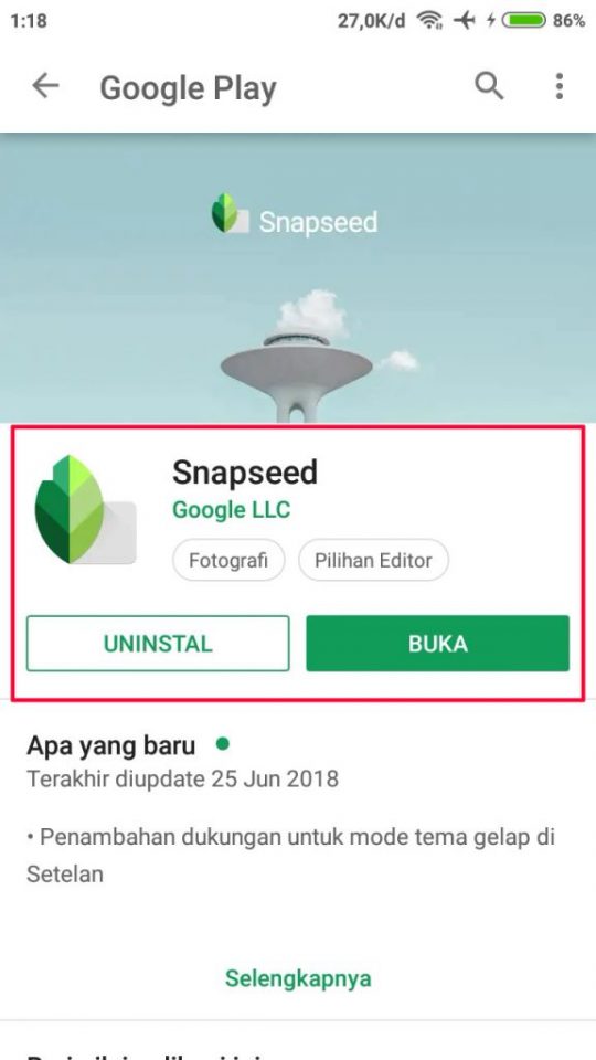 1. Langkah pertama, pastikan kamu sudah memiliki aplikasi editing Snapseed. Jika belum silahkan download terlebih dahulu aplikasi Snapseed.