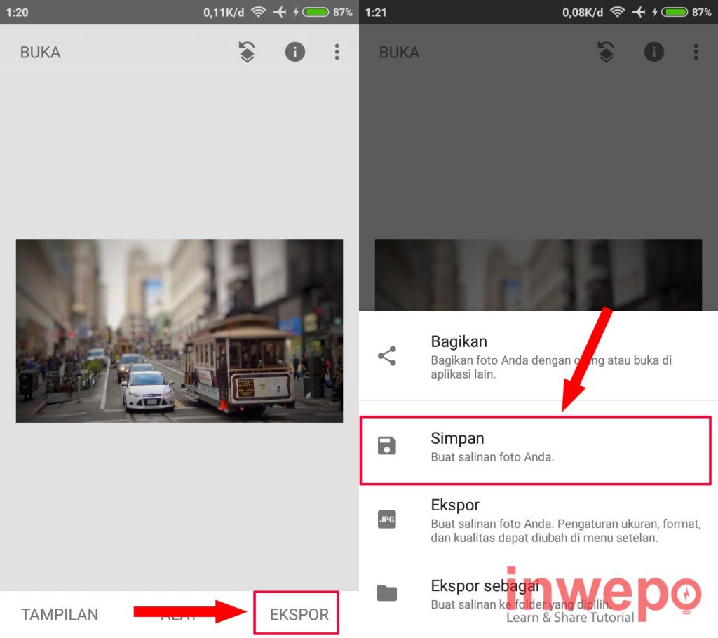6. Langkah keenam, pada layar awal pilih EKSPOR lalu pilih Simpan untuk menyimpannya ke galeri smartphone kamu.