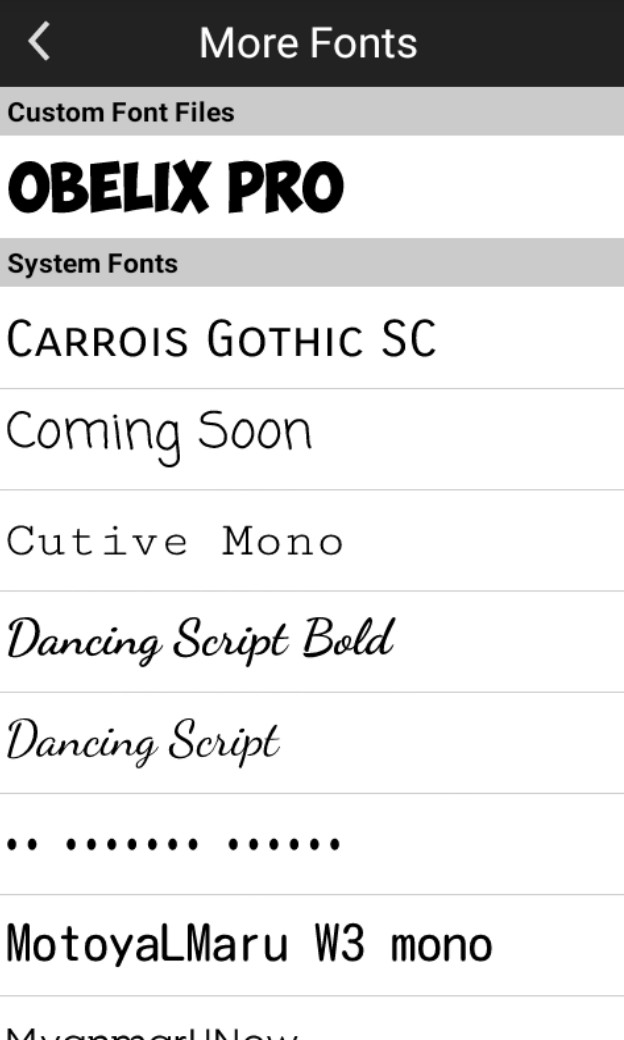 4. Nah di halaman ini kamu bisa menemukan font yang telah kamu download dan tambahkan ke dalam aplikasi PicSay.