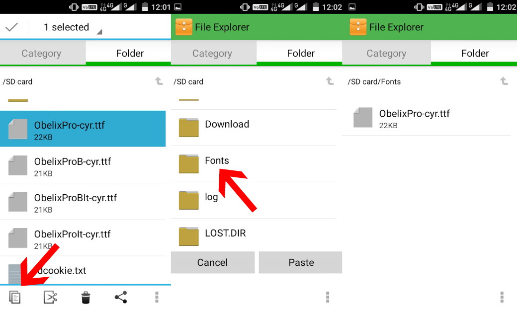 Kamu tekan dan tahan lalu copy dan pastekan ke dalam folder Fonts.