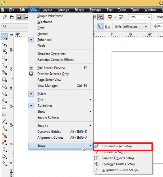 3. Pada menu bar, klik pada menu View – Setup – Grid and Ruler Setup.