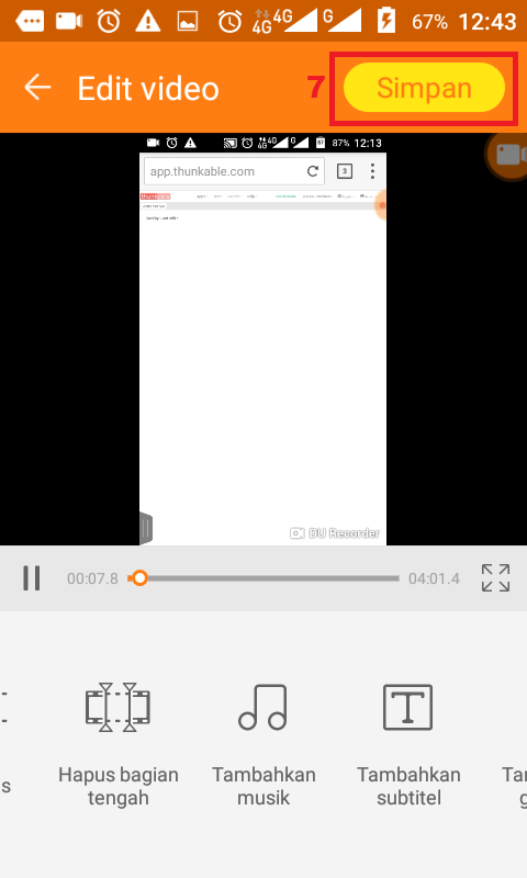 7. Setelah melakukan penambahan musik ke dalam video. Silahkan ketuk Simpan yang berada di pojok kanan atas. Tunggu beberapa saat sampai muncul tampilan video hasil penambahan musik tadi.