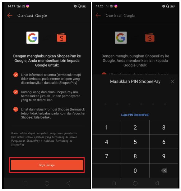 3. Kemudian, kamu akan masuk kehalaman Privasi dan Kebijakan. Pelajari terlebih dahulu syarat dan ketentuan sebelum menghubungkan aplikasi Play Store dengan akun Shopee kamu. Setelah itu, tekan tombol Lanjutkan (halaman ini tidak bisa di screenshot). Untuk menghubungkan aplikasi Play Store dan akun Shopee kamu, tekan tombol Saya Setuju dan kemudian masukkan pin akun Shopee kamu.