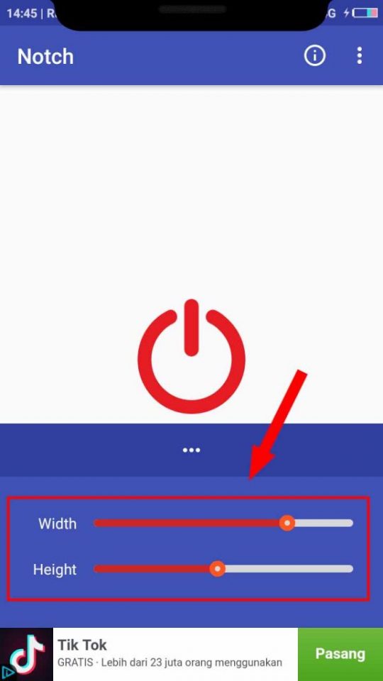 4. Nah, gunakan menu Width dan Height untuk mengatur panjang dan lebar dari Notch.