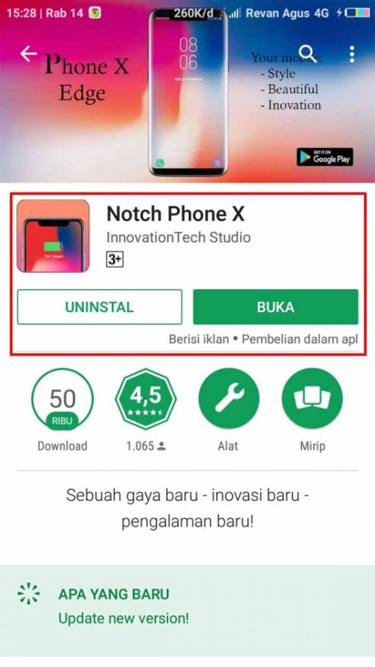 1. Download di Playstore aplikasi Notch Phone X.