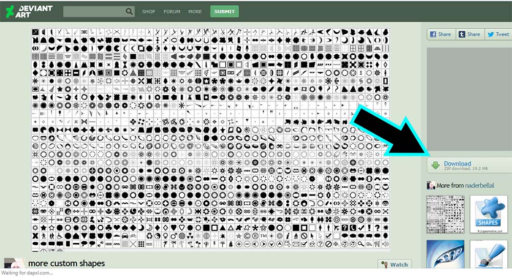 1. Download Custom Shape yang ada di situs DeviantArt.