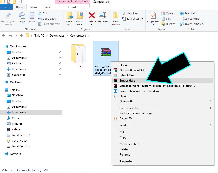 2. Setelah download custom shape, pastikan kamu mengekstrak file rar yang sudah di download.