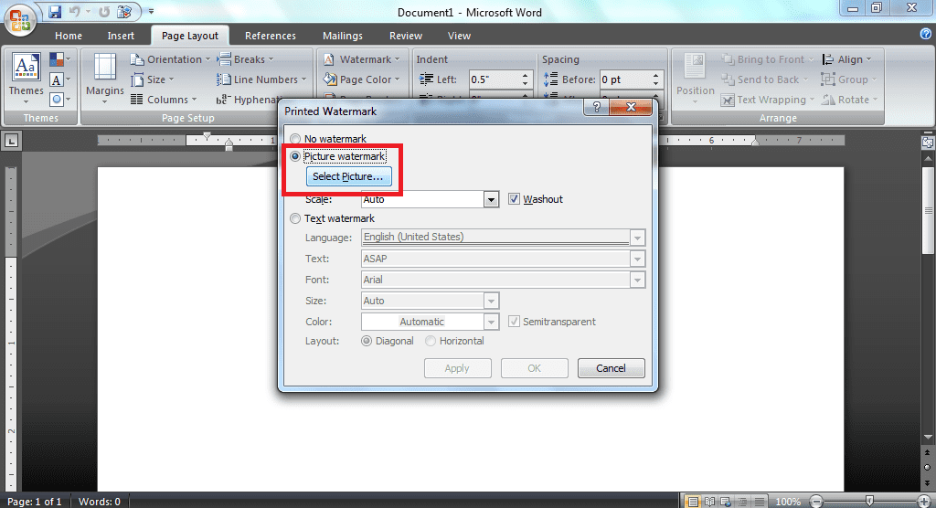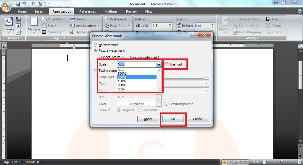 4. Setelah logo dipilih, klik tombol Ok untuk menerapkan watermark logo di dokumen Ms Word.
