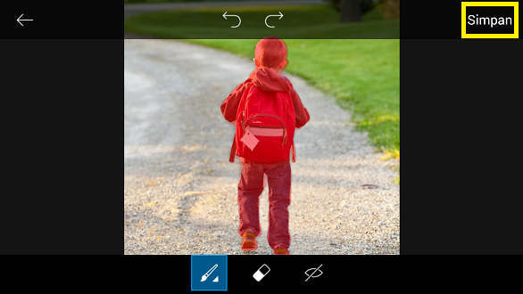 Seleksi objek. Bila ada bagian objek yang terhapus, kembalikan dengan icon ‘Kembalikan’.