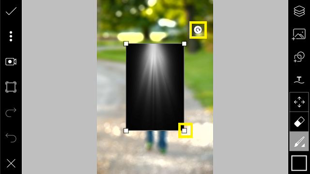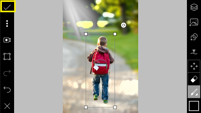 10. Sesuaikan lebar objek dengan foto background buram. Klik centang.