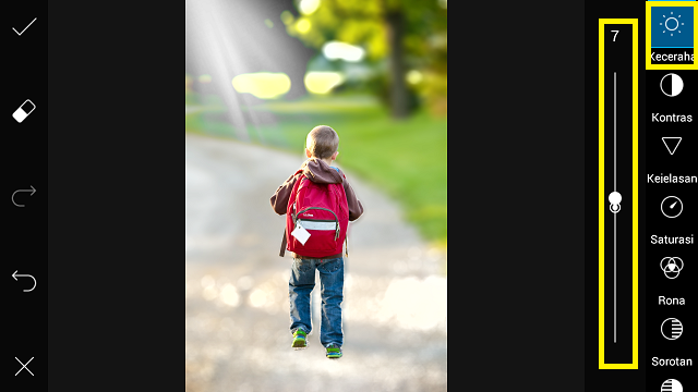 Naikkan nilai kecerahan menjadi +7.