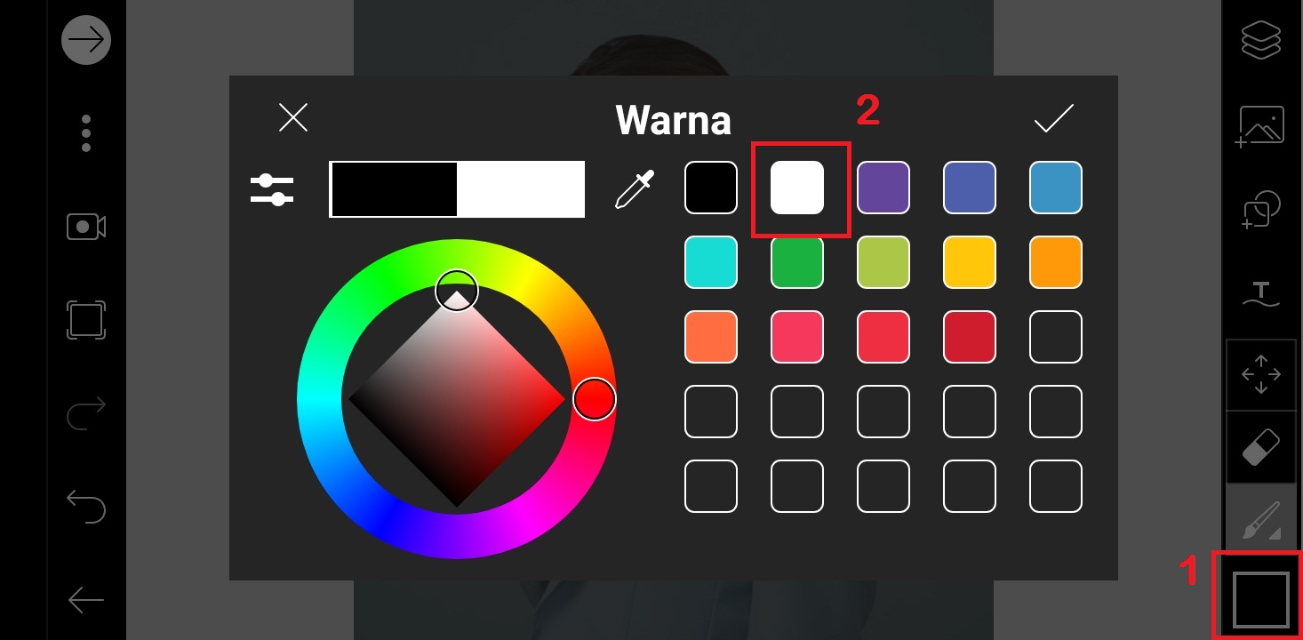 12. Tutup lapisan, dan klik fitur ‘Warna’. Pilih warna putih, dan klik centang.