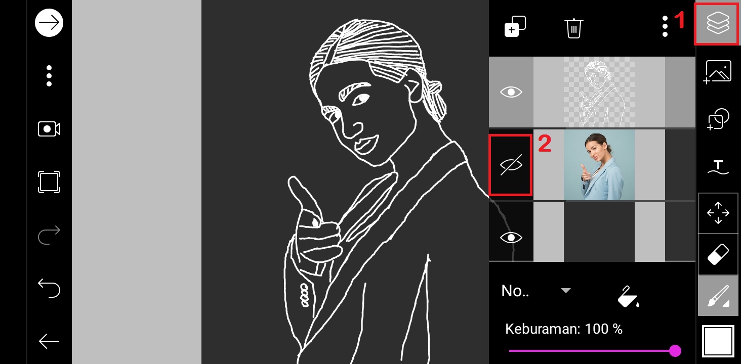 15. Non-aktifkan lapisan foto, klik ‘Lapisan’ – non-aktifkan lapisan foto.