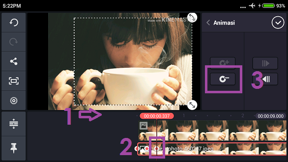9. Pilih waktu durasi – klik tanda ‘+’ – geser gambar kearah kanan – klik tanda ‘–’ untuk berhenti.