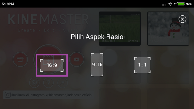 3. Pilih aspek rasio video. Disini saya menggunakan aspek rasio 16:9.
