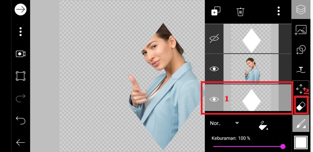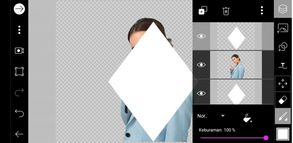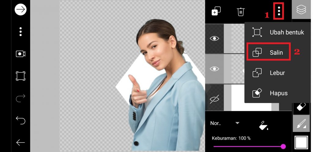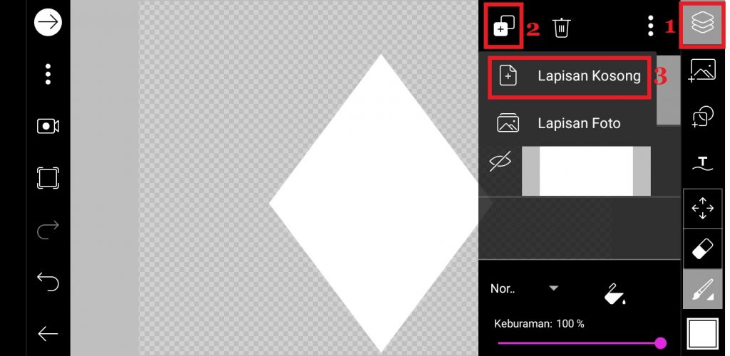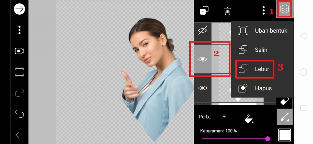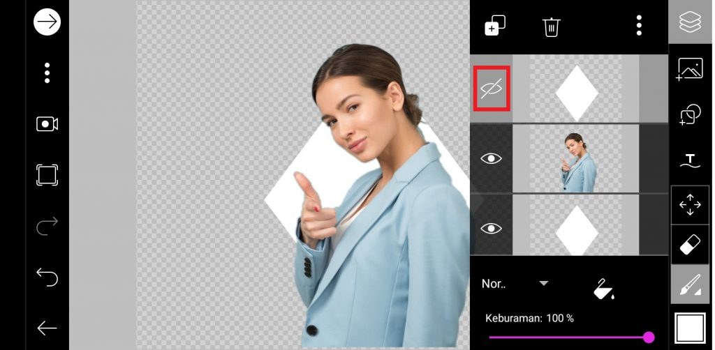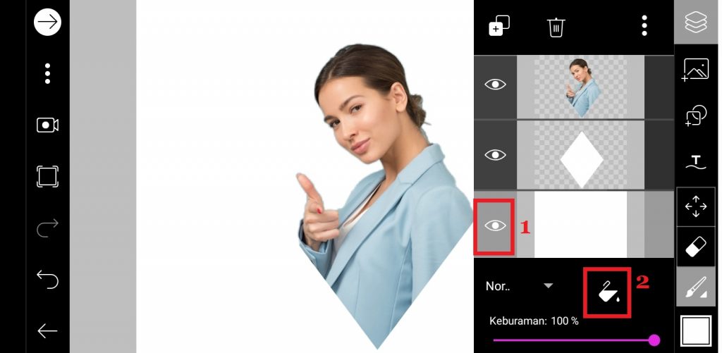 5. Klik ‘Lapisan’ – non aktifkan background putih.