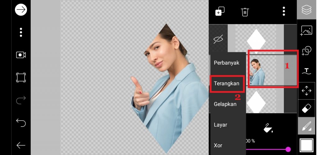 13. Pilih lapisan objek – ubah pengaturan dari normal menjadi terangkan.