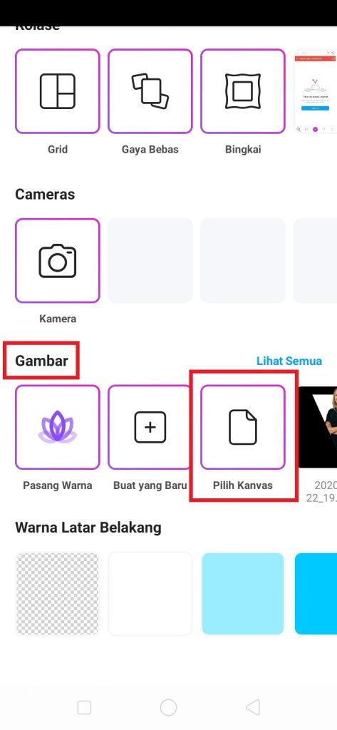 4. Cari ‘Gambar’, dan pilih ‘Kanvas’.