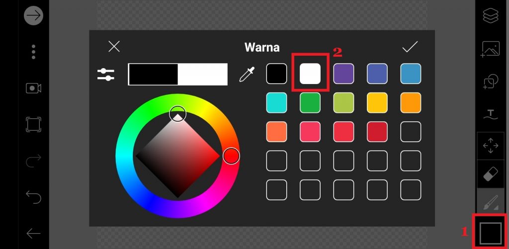6. Tutup ‘Lapisan’ – pilih ‘Color’ – pilih warna putih – klik centang.
