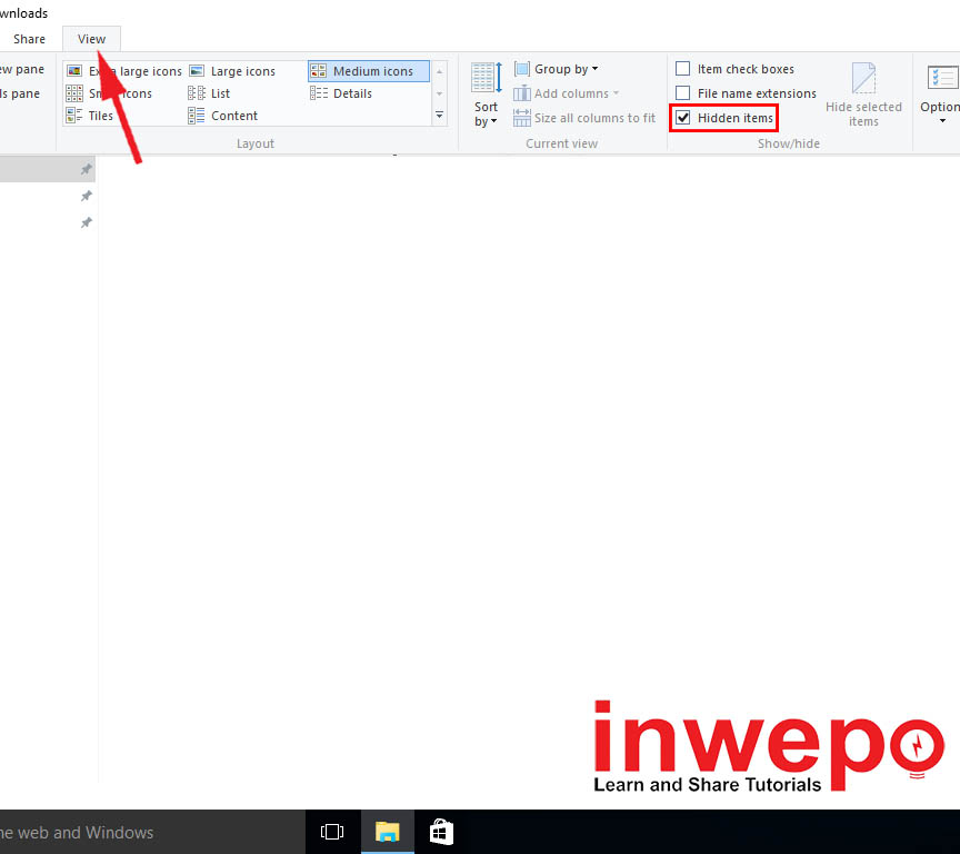 1. Buka Windows Explorer – klik view – klik atau centang Hidden Items.