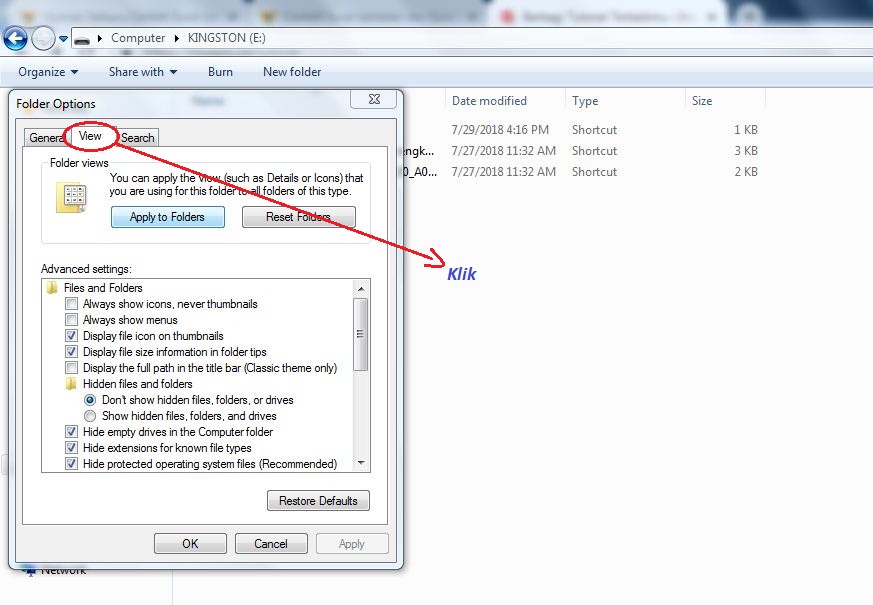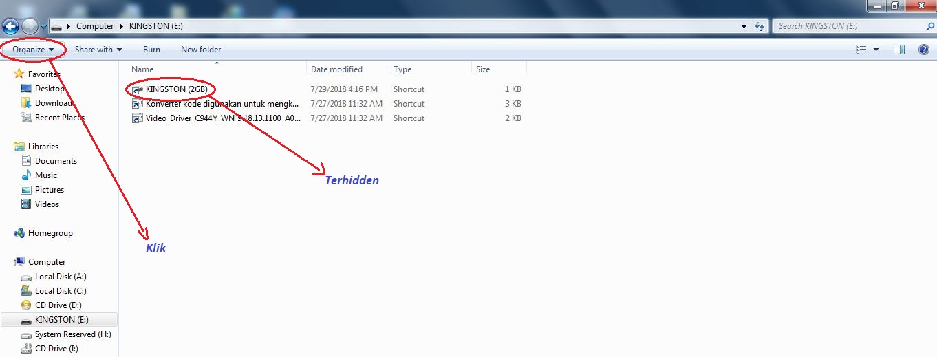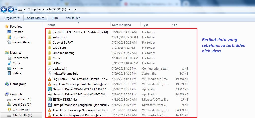 Berikut tutorial cara membuka file yang terhidden di flashdisk.