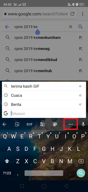 Tampilan GBoard ketika digeser ke bawah.