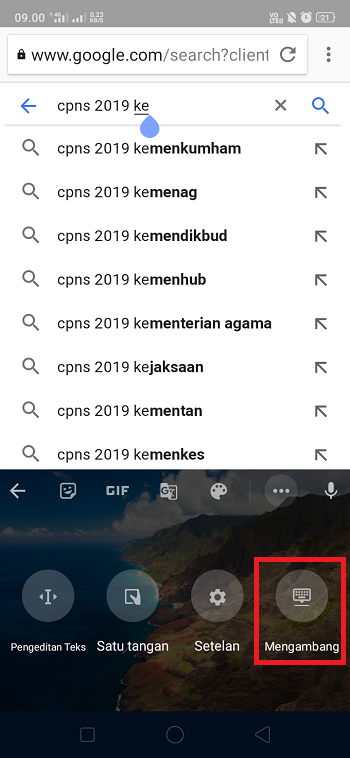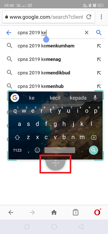 5. Kini floating mode atau mode mengambang di GBoard sudah aktif. Klik dan tahan icon ‘Pindah Keyboard’ untuk menggeser keyboard ke atas, bawah, kiri, dan kanan.