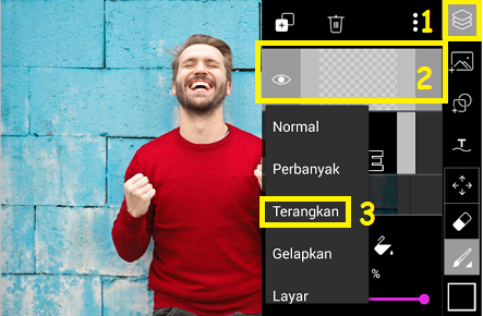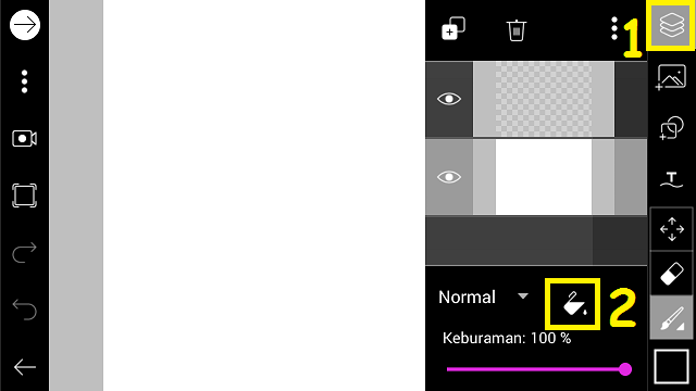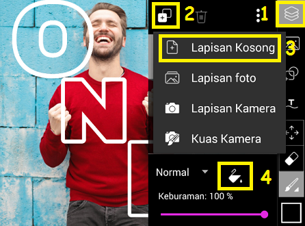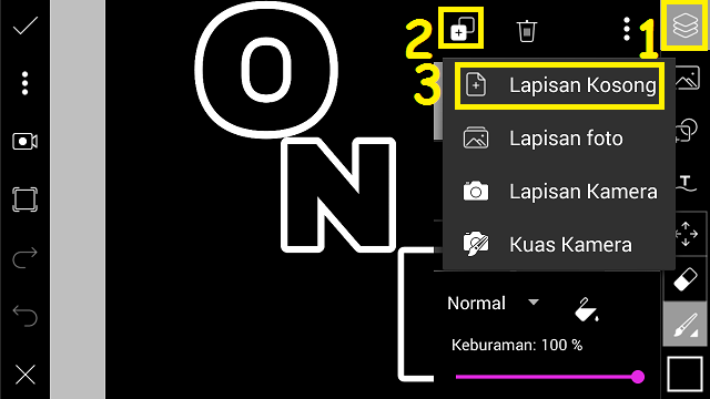3. Klik ‘Lapisan’ – pilih icon gelas.