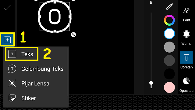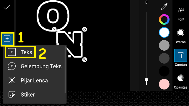 4. Pilih ‘Teks’. Kamu bisa menulis apa saja, namun disini saya akan menulis ONE.