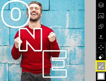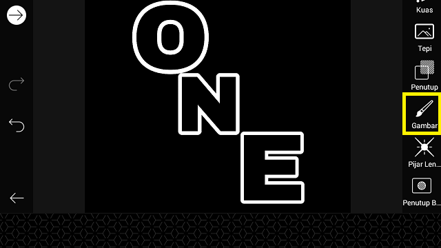 Beri ‘Coretan’ pada huruf, pilih warna putih, dan kurangi tebal coretan. Posisikan huruf E.