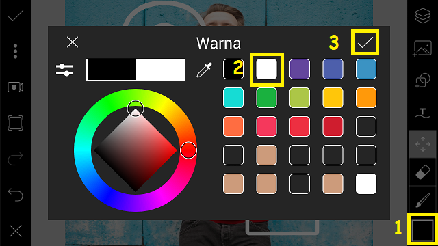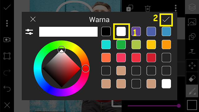 14. Klik ‘Warna’. Pilih warna putih.