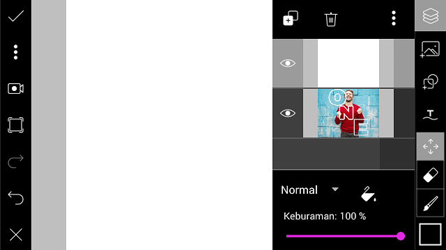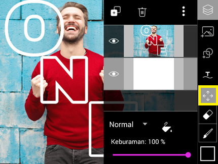 Beri ‘Coretan’ pada huruf, pilih warna putih, dan kurangi tebal coretan. Posisikan huruf N.