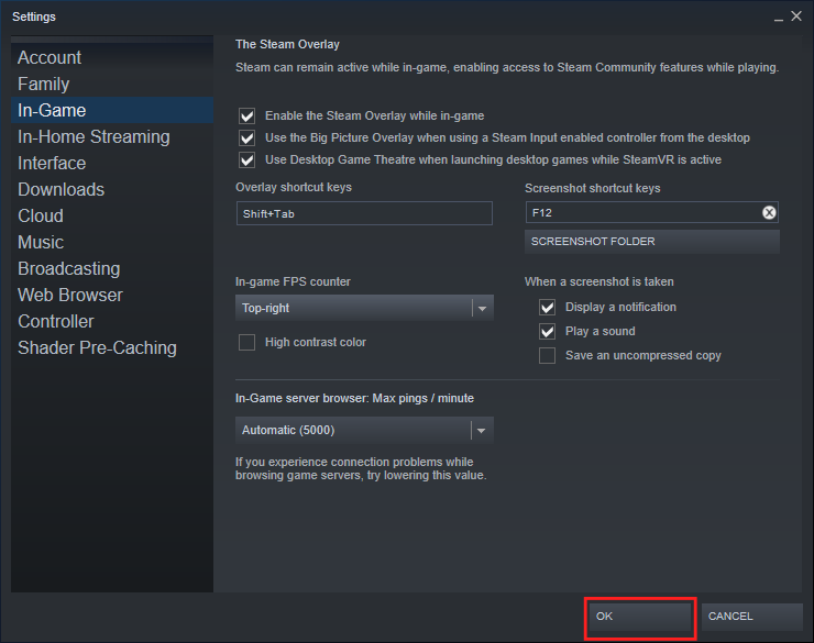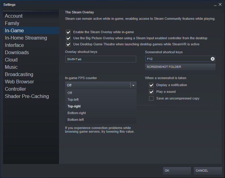 6. Setelah mengatur FPS Counter, klik OK untuk konfirmasi pengaturan yang telah kita ubah sebelumnya. Nantinya, pada saat memainkan game pada platform Steam, FPS Counter akan muncul sesuai dengan posisi yang telah ditetapkan.
