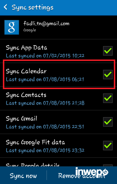 3. Centang sync kalender.