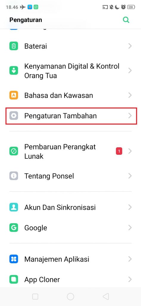 2. Cari, dan pilih ‘Pengaturan Tambahan’.