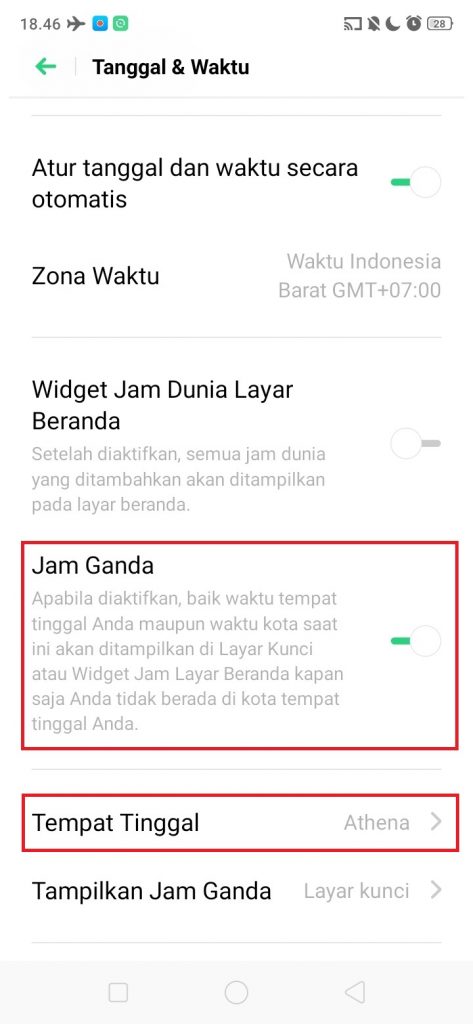 4. Aktifkan ‘Jam Ganda’. Ketika mengaktifkan fitur ini, maka akan muncul dua pertanyaan, yaitu tempat tinggal, dan tampilkan jam ganda.