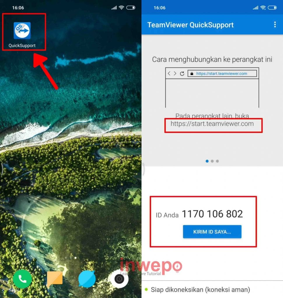 1. Pastikan kamu sudah menginstall aplikasi Team viewer dan Quick Support di smartphone kamu masing-masing.