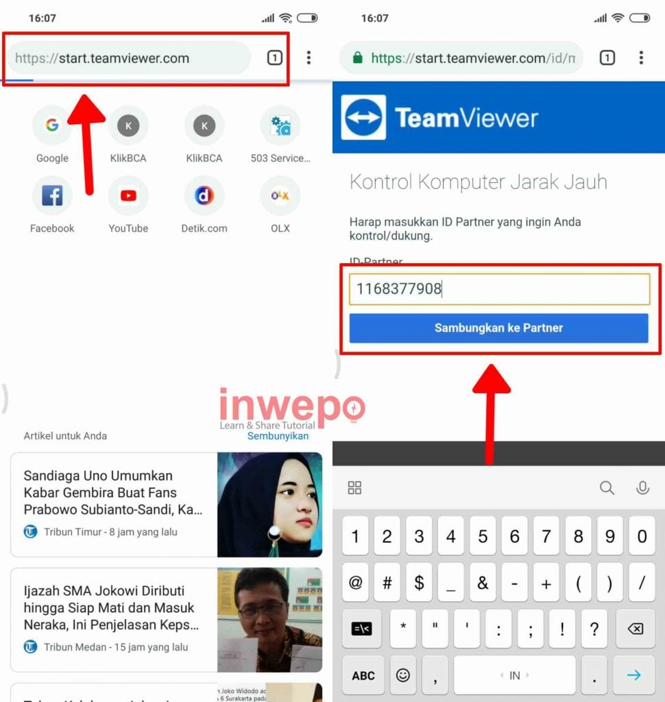 3. Masuk ke situs teamviewer, yakni https://start.teamviewer.com lalu masukkan id perangkat lain yang akan di akses, berikutnya tap Sambungkan ke Partner.