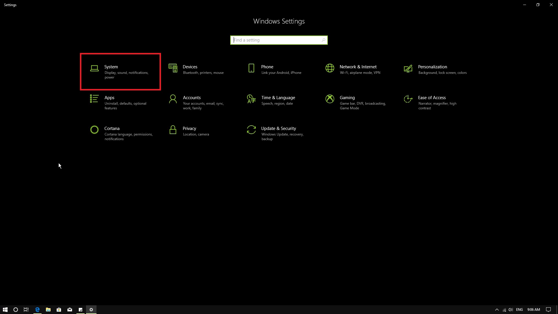 1. Buka Setting pada windows 10 kamu dan pilih menu System.