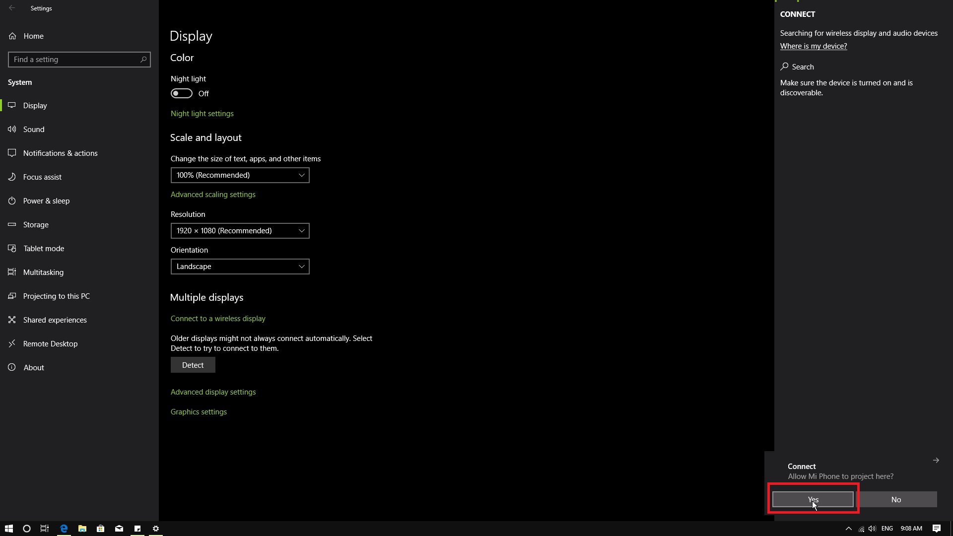 Aktifkan Wireless display dan pilih Device / komputer yang kamu gunakan.