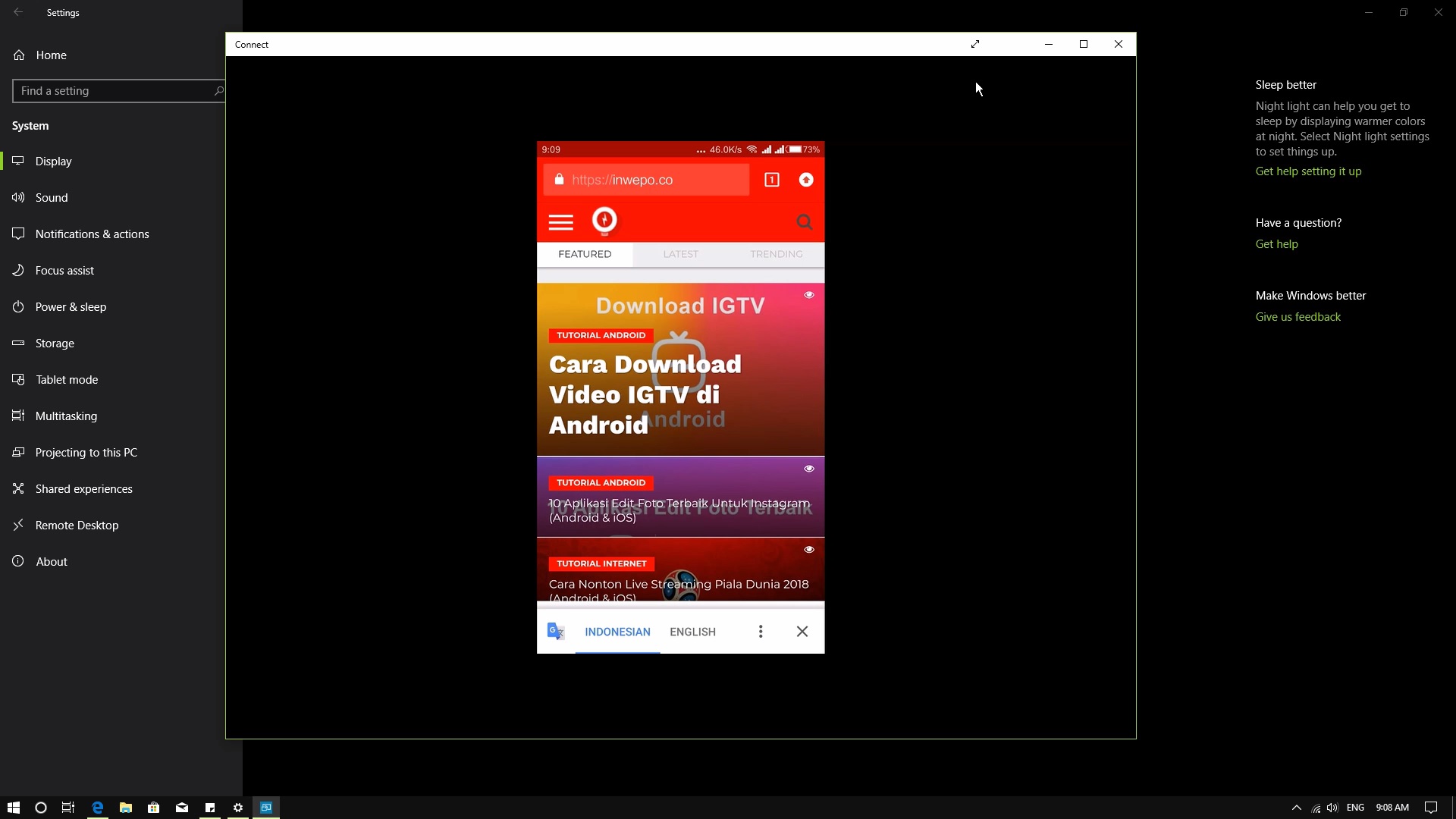 Percobaan diatas di contohkan menggunakan handphone, namun tidak hanya handphone saja yang bisa menggunakan fitur ini. Begitulah cara menampilkan layar HP ke laptop / pc windows 10. Selamat mencoba