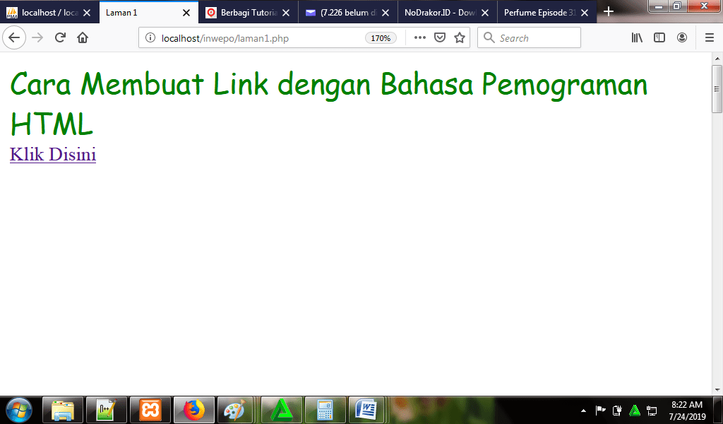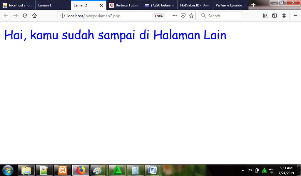 6. Untuk melihat hasil script code di atas, kamu bisa buka browser kamu ketiklah http://localhost/inwepo/laman1.php
