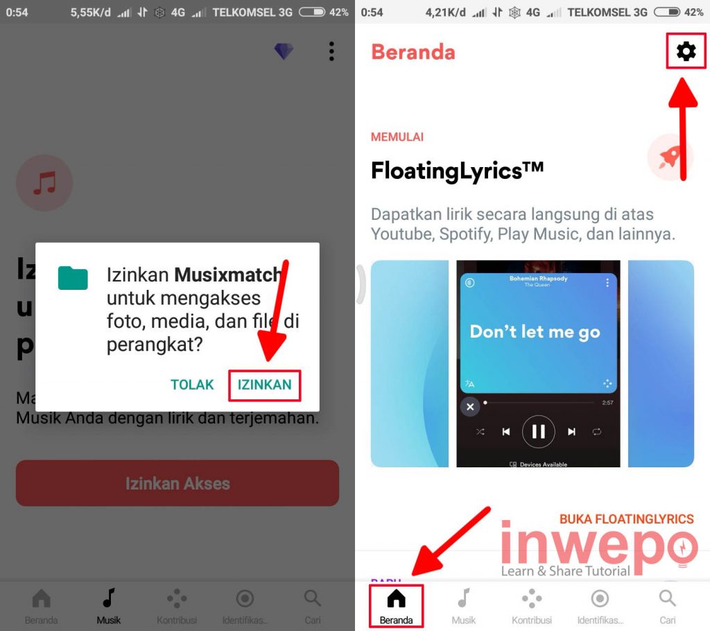 4. Tap IZINKAN kemudian tap beranda lalu tap lagi icon gear atau pengaturan.