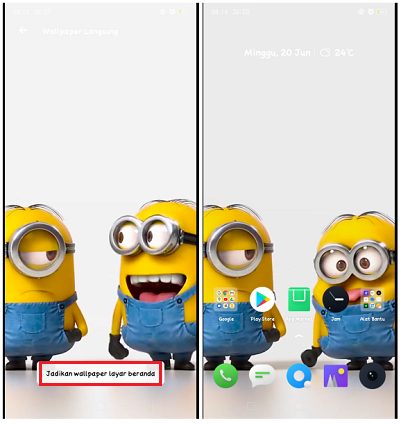 5. Terakhir, pilih Jadikan wallpaper layar beranda dan selesai. Kurang lebih berikut tampilan live wallpaper dengan suara.